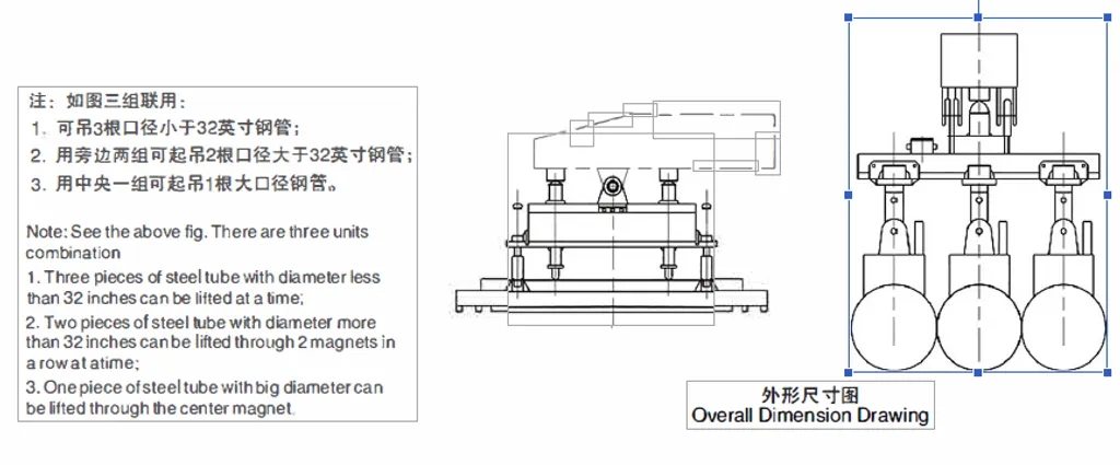 This series designed with unique magnetic circuit has round arc pole for lifting and transporting steel tubes. Compared to other lifting tools like hook or steel wire, it can touch the tube right from the top and be able to load and unload the materials directly, thus it improves working efficiency greatly. At the same time, that it will not touch neighbouring tube provides a safety operation and energy-saving